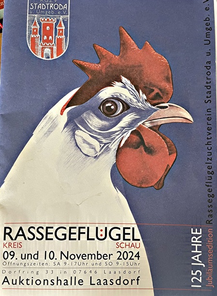 Zu unserem 125. jährigen Vereinsjubiläum fand in Laasdorf/Thür., in der Qnetics Auktionshalle Dorfring 33am 09. u. 10.11.2024 die 2024 er Kreisrassegeflügelausstellung statt.